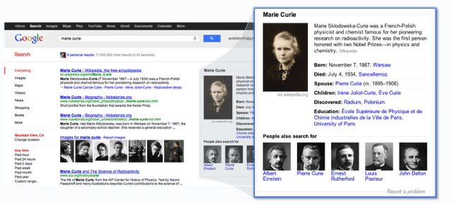 In 2012, Google debuted the knowledge graph with the intent of eliminating the need for users to visit another website, such as Wikipedia for general information.